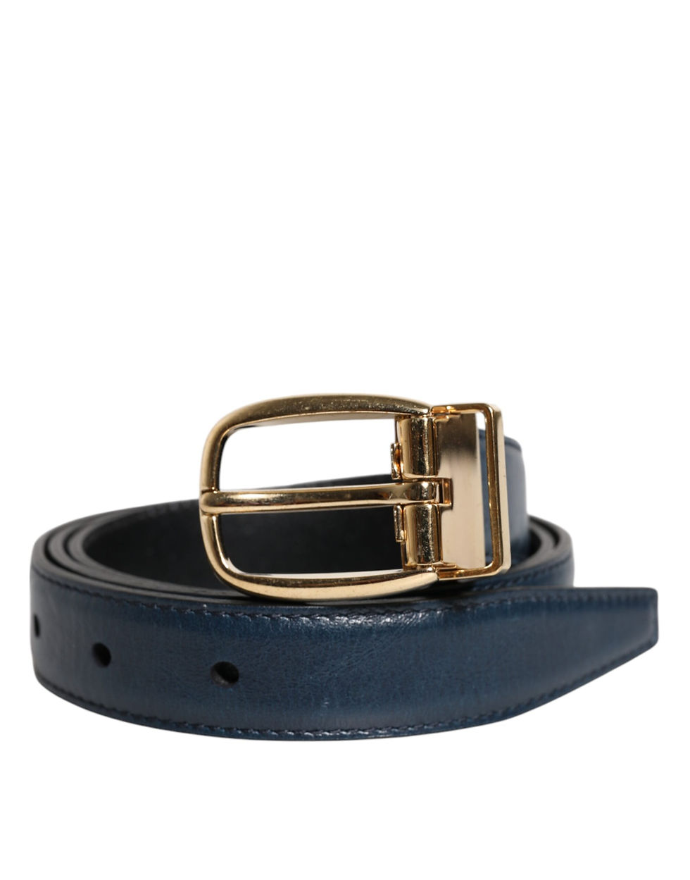 Dolce & Gabbana Blue Leather Gold Metal Buckle Men Belt