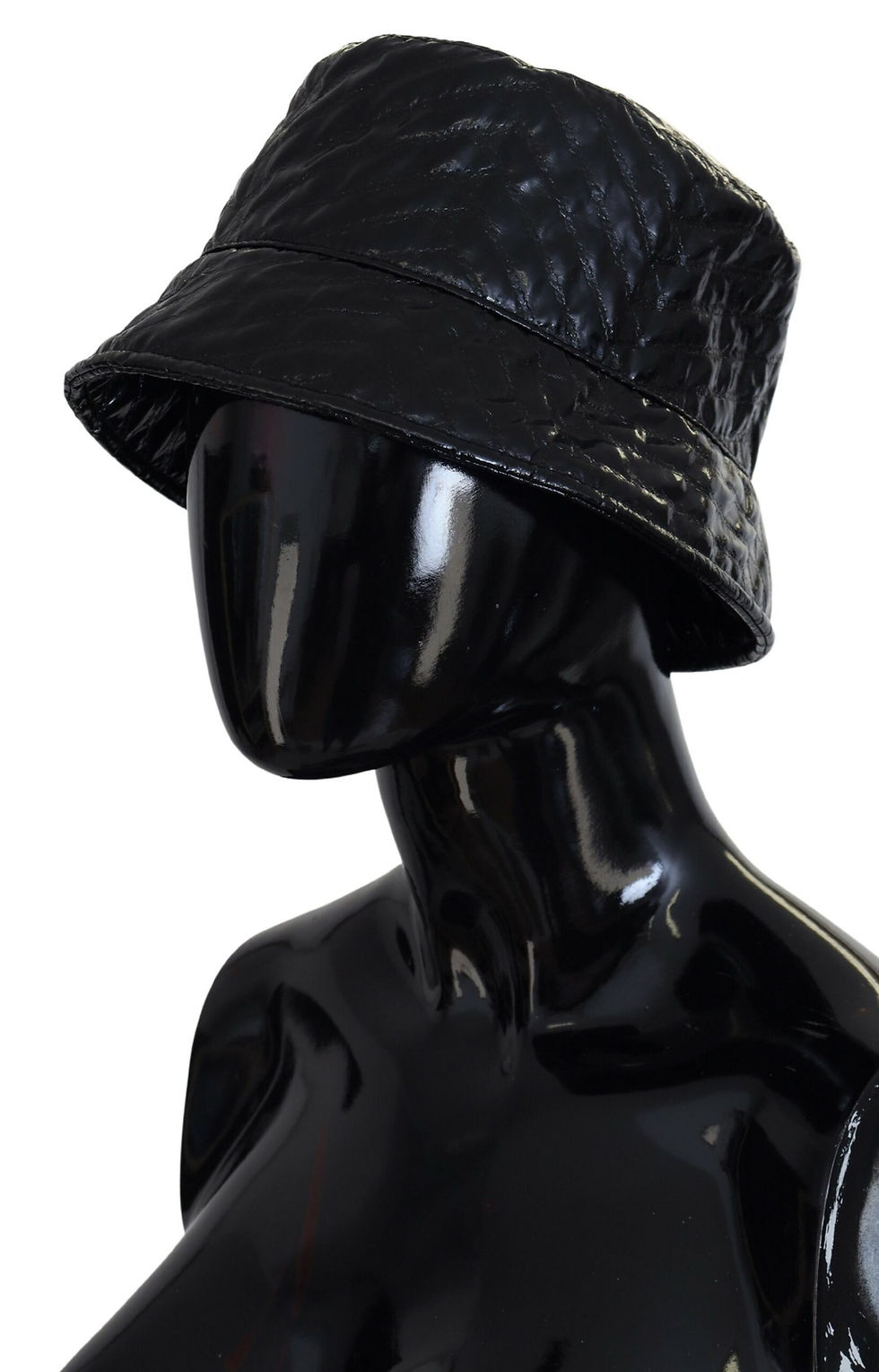Dolce & Gabbana Black Quilted Faux Leather Women Bucket Cap Hat