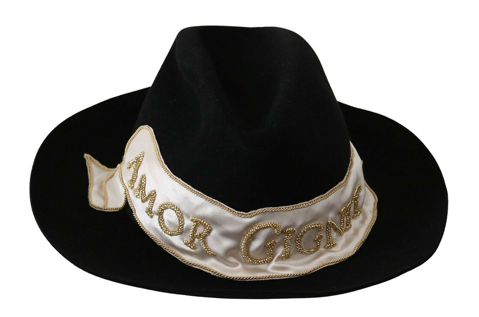 Dolce & Gabbana Black Lapin Amor Gignit Wide Brim Panama Hat