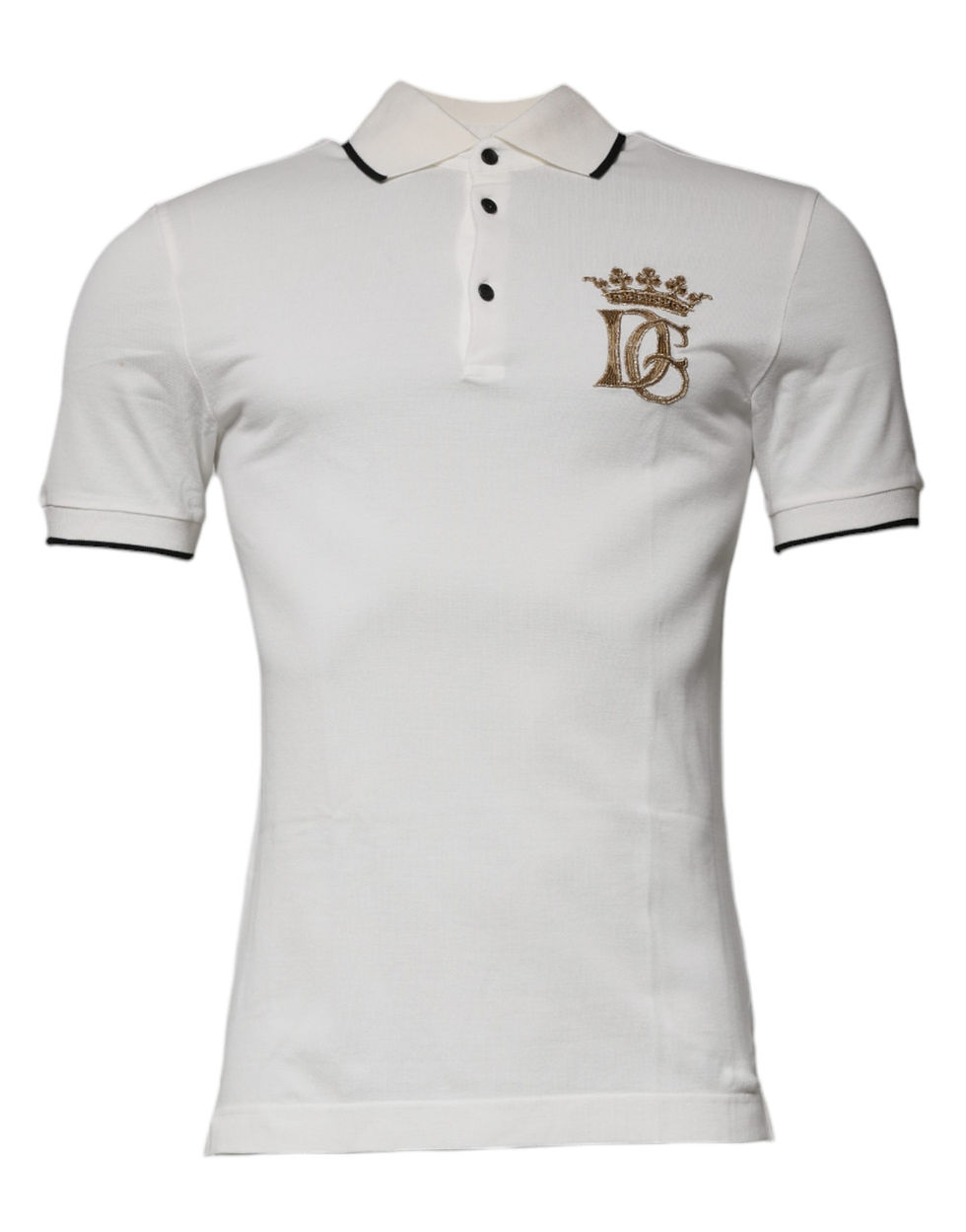 Dolce & Gabbana White Cotton Crown Collared Polo T-shirt