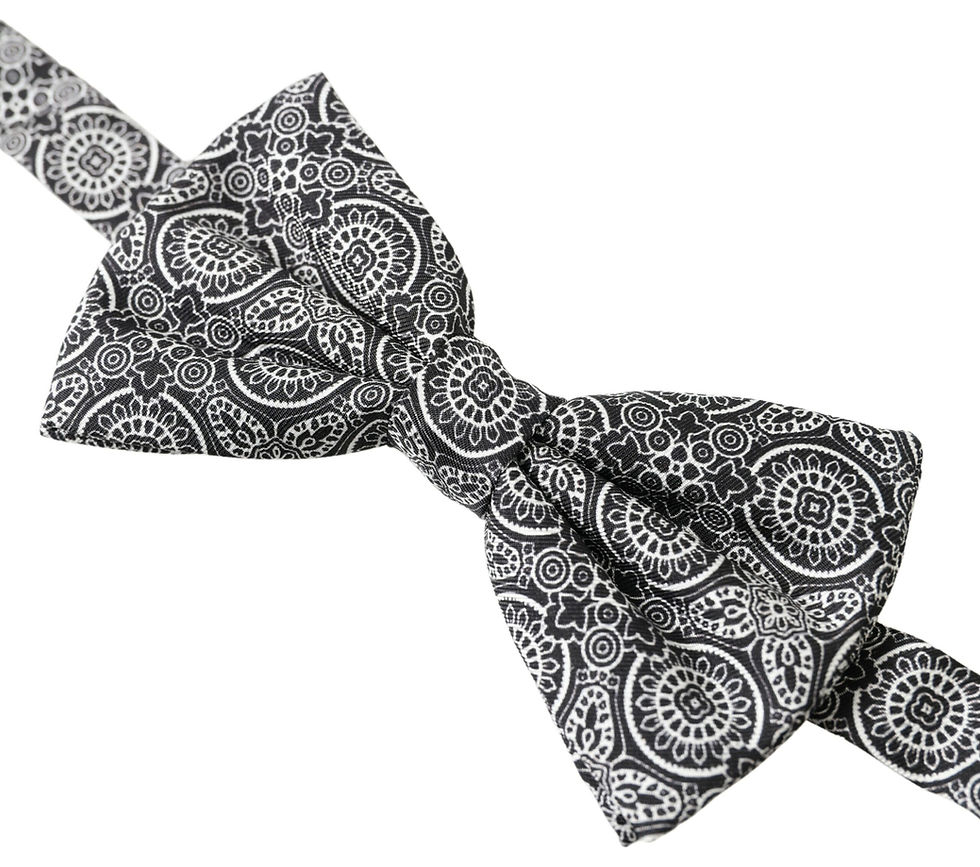 Dolce & Gabbana Black Silk Patterned Necktie Men Accessory Bow Tie